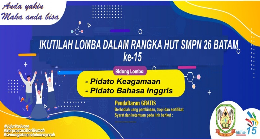- Unggah Teks dan Video Pidato melalui form pendaftaran online di www.smpn26batam.sch.id