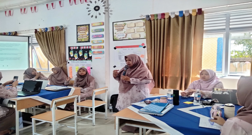 Guru SMPN 26 Batam yang telah mengikuti kegiatan pelatihan mengenai pembelajaran mendalam mendiseminasikan informasi dan pengetahuannya kepada rekan sejawat di SMPN 26 Batam.